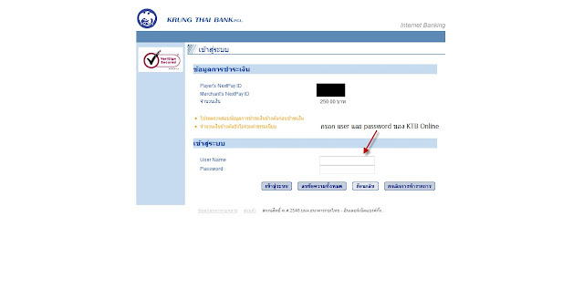 4. ตอนนี้คุณจะถูกส่งไปหน้าเว็บ Internet Banking ของคุณ ให้คุณกรอก Username และ รหัสผ่าน บัญชี Internet Banking ของคุณ จากนั้นก็คลิกยืนยันการชำระเงิน
