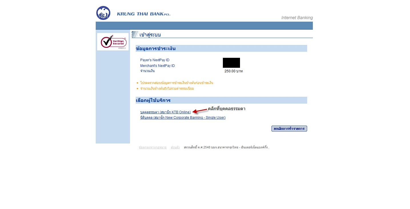 4. ตอนนี้คุณจะถูกส่งมาที่หน้าชำระเงิน ของธนาคารกรุงไทย ให้คลิกที่ลูกค้าบุคคลธรรมดา